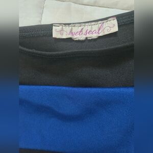 Stylish one shoulder dress by Wet Seal. Features striking black and blue stripes. Ideal for a night out.