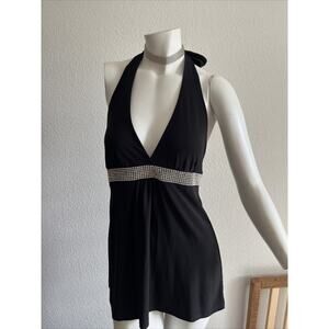 Wet Seal Vintage Y2K Black Rhinestone Halter whimsygoth Top S holiday party top