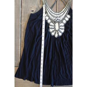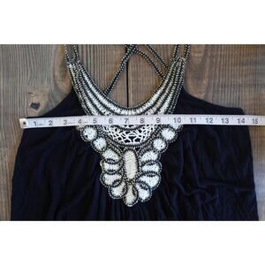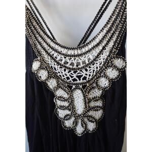 Vintage Y2K RARE Wet Seal Babydoll Top Womens Large Black White Crochet Festival Flowy USA Whimsy Boho Metallic Artsy Strappy Rope Embroidered Stretch Flowy