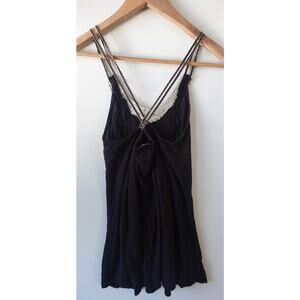 Wet Seal Vintage Y2K Tank Top Womens Large Black Crochet Babydoll Boho Flowy USA
