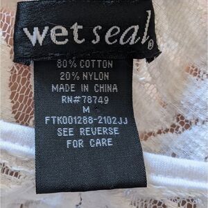 Wet Seal White Lace Cold Shoulder Crop Top Size Medium