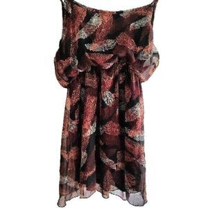 Wet Seal Women M Black/Peach Ruching Spaghetti Strap Blouse Art 2 Wear Boho Top