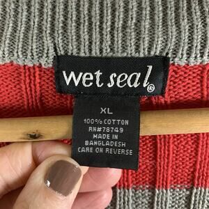 Wet Seal Womens Y2K Fitted Cable Knit Cardigan Sweater Sz XL Striped Preppy Punk