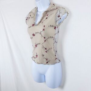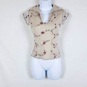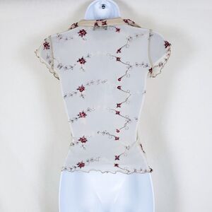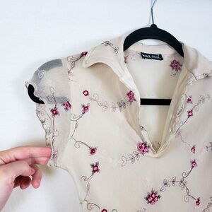 Wet Seal Y2K Embroidered Mesh Top Womens Small? Sheer Back Romantic Boho Fairy