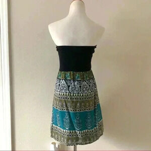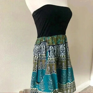Wet Seal turquoise boho print strapless mini dress