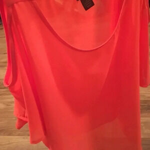 Item: vintage y2k coral open shoulder top. A couple thin spots on font of shirt (pictured) not noticeable when wearing