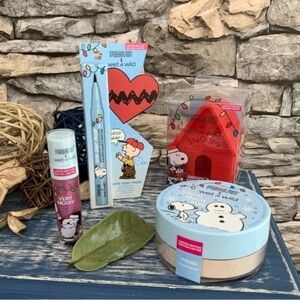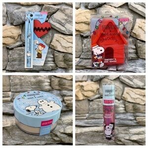 Brand new, sealed bundle lot limited edition Peanuts x Wet n Wild Good Grief ultra black waterproof liquid eyeliner, Snow Much Fun translucent setting powder, and Christmas Pageant Very Merry lipgloss, and Snoopy’s Dog House sponge holder case. “-Things might not always go right for Charlie Brown, but this limited-edition version of our top-selling Breakup Proof Waterproof Liquid Eyeliner is sure to be "Good Grief" proof! Ultra black. -Your makeup gets frozen in place with the help of this translucent loose setting powder. -Get ready to stand under the mistletoe with this very merry lip glosses! Formulated with antioxidant-rich vitamin E and peppermint oil. Cruelty-Free and Vegan: wet n wild makeup products are never tested on animals and are always cruelty-free.” 100% authentic. #peanuts #wetnwild #limitededition