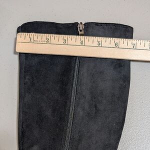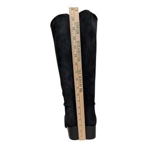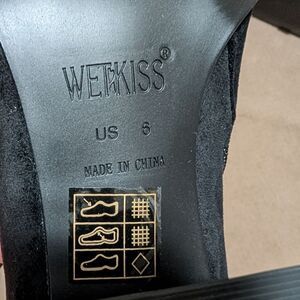 WetKiss faux suede knee high boots size 6 inside zip abstract block heel black