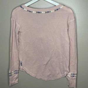 We the Free by Free People, pink waffle knit long sleeve henley top in size XS. No flaws. Super soft. Raw edges. Cotton 60%, polyester 40%, machine wash.