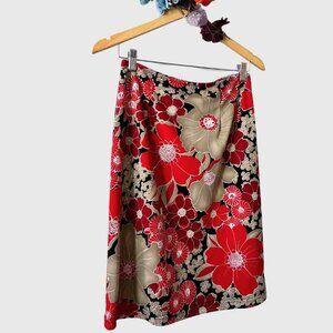 Wetoo Sportswear 2000s Earthy Floral Midi Skirt – Size M, Excellent Condition