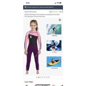 Wetsuit DIVE & SAIL Girls Kids 2.5mm Long Sleeve Thermal Swimsuit UV Protect XXL