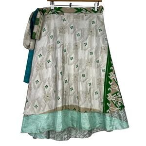 Wevez Sari Silk Bright Flower Boho Multicolor Layered Wrap Skirt Size M