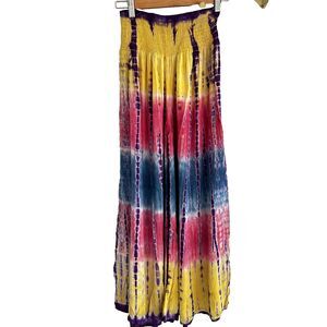 Wevez Tie Dye Wide Leg Pants Free Size OS Colorful Palazzo Hippie Boho Festival