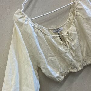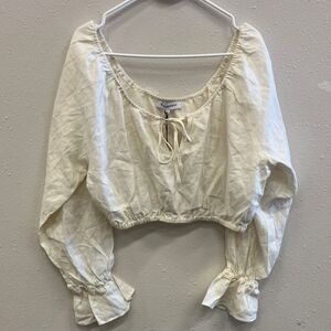 Weworewhat Peasant Cream Linen Blend Bell sleeves Cottagecore Fairycore crop top
