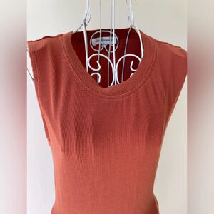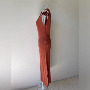 Weworewhat ribbed shirt midi dress with slits sleeveless terracotta size M