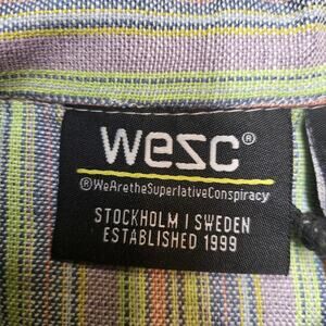 Wezc Linen Blend Shirt Mens M Striped Button Up Short Sleeve