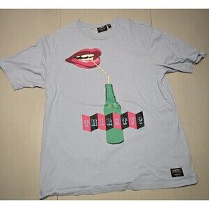 Wezc Mason Thrills Thirsty T Shirt. Chambray Blue. Size XXL. Nice Graphics.