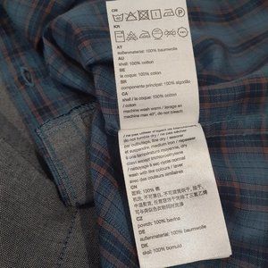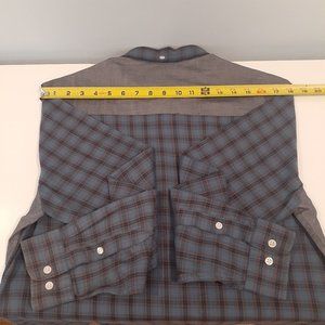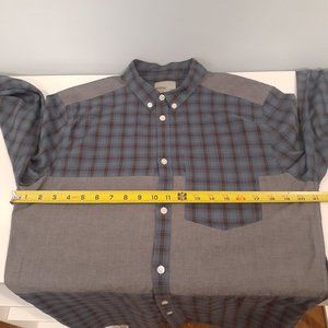 Wezc men's medium plaid color blocked button down long sleeve shirt. 100% cotton. Shirt is in excellent condition. Please see photos for details and measurements.