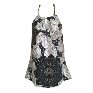 WhBm Floral 100% silk Halter Top Black White Small Size 2
