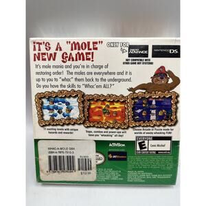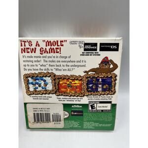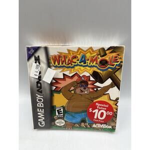 The product is a factory sealed copy of the video game "Whac-A-Mole" for the Nintendo Game Boy Advance, released in 2005. Published by Nintendo, this action and adventure game is suitable for all ages with an E-Everyone rating. Players can enjoy hitting the mole as it pops up in various locations on the screen, testing their reflexes and timing skills in this exciting gaming experience.