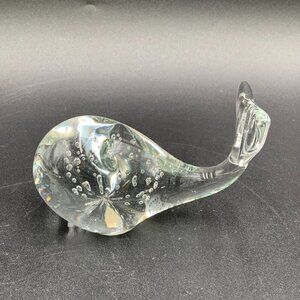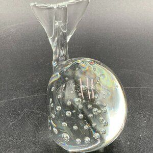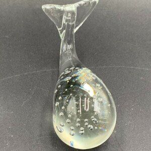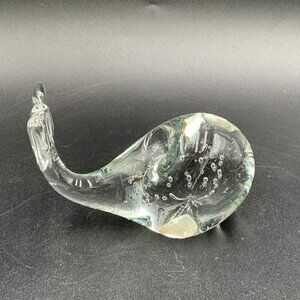 Whale Paperweight Clear Art Glass with Controlled Bubbles 4 1/4" Long