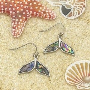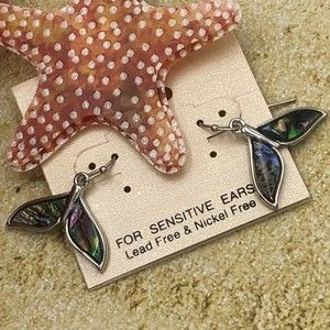 🌼 Whale Tail Fish Mermaid Tail Abalone Dangle Earrings