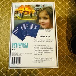 Compete with your friends and family to create the funniest memes. Do this by using one of your dealt caption cards to caption the photo card in each round.