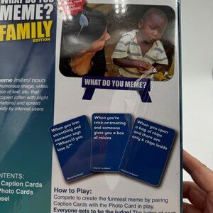 Description: What Do You Meme? Family Edition Card Game is a fun and hilarious game for everyone ages 8 and up.
