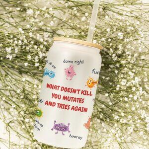 What Doesn't Kill You Mutates And Tries Again, Virus Frosted Tumbler, Epidemiologists, Microbiologists, Infectious Disease, Sarcastic Gifts