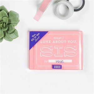 This little book contains fill-in-the-blank lines to describe some aspect of sisterly love about a female sib. Just complete each line and voilà: you have a uniquely personal gift sis will read again and again. Make it as sappy, sassy, or silly as you choose! Knock Knock is an independent maker of clever gifts, books, and whatever else we can think up. Our mission is to bring humor, creativity, and smarts to everyday life. Put the fun in functional with Knock Knock stuff.