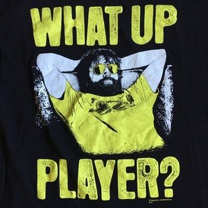 Purchased this graphic tee in Vegas and hubby hardly used it. Graphic still looks great. I cut the sizing tag off but I'm pretty sure it's a large. It did shrink a bit after the first wash. Still in EUC. Sold from a smoke/pet-free home.