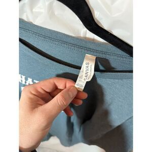 Soft and comfy blue tee with bold white “What Would Dolly Do?” graphic text on front. Unisex style, tagged Bella+Canvas in size Large. Lightweight, breathable cotton blend tee perfect for country music lovers, Dolly fans, or vintage-inspired looks. Pre-owned and in great condition with no stains or holes.