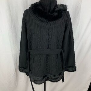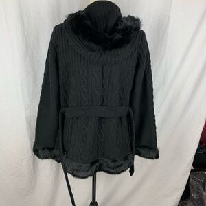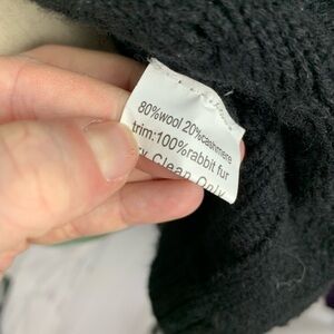 Real rabbit. In excellent condition. Has a fabric belt that you can tie the coat shut. Measurements are approximations