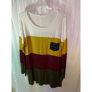 We have this top in mind for your wardrobe! This top has a trendy color block pattern with just the right amount of color for a look you can easily style! It's comfortable, figure-flattering, and even has a glittery pocket! Simply, pair this top with skinnies and booties for an effortlessly chic look!