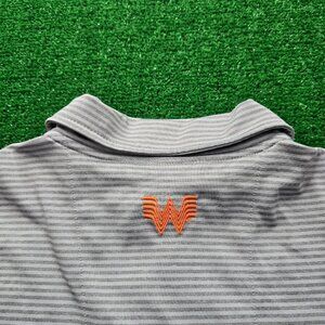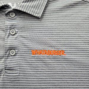 Whataburger Polo Shirt Mens Medium Gray Striped Employee Uniform Work Wear