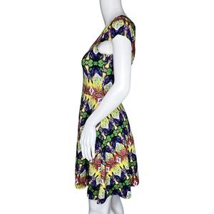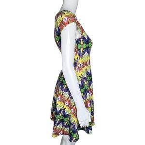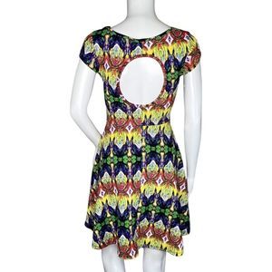 What's Hot Dress Womens Small Yellow Green Geo Skater Dress Fit Flare 2000s Y2K