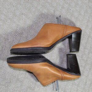 What's What by Aerosole Women's Sz 8.5M Tan Supple Leather 3" Heeled Mules Shoe