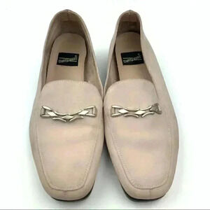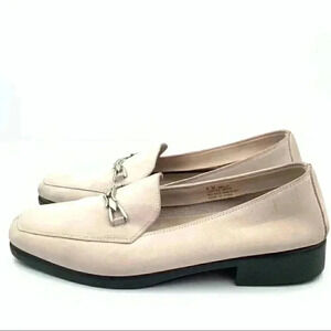 Whats what Womens flats size 8 linkage dusty pink nubuck suede horsebit square toe slip on loafers vintage 90s Academia