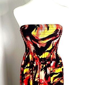 What's Hot Strapless Maxi-Dress, Black, Red & Yellow Print, Size Large