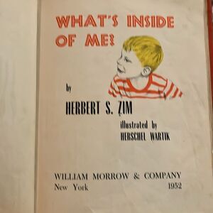 What’s inside of me book 1952 written by Herbert S Zim as shown in photo it does have a few little torn looking spots where the old library cards were but all of the pages to read and look at are in perfect condition. It’s a very cool book.