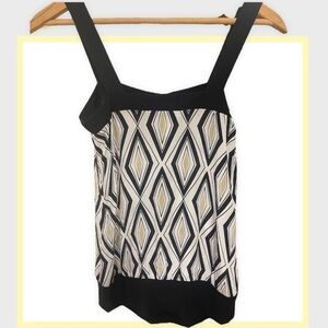Whbm 100% Silk Sleeveless Pattern Print Diamond Design Strap Blouse Top Size S