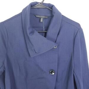Whbm Jacket Womens Size 10 Unlined Navy Asymmetrical Button Up Flap Collar