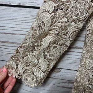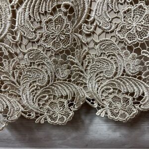 Lace overlay, stretch charmeuse interlining. Hidden back