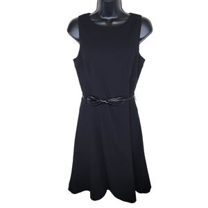 Excellent pre-owned condition. No flaws to note. Women's Whbm black sleeveless sheath dress with belt size 6.