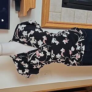 short sleeve empire top. floral print. machine wash cold. (g2)