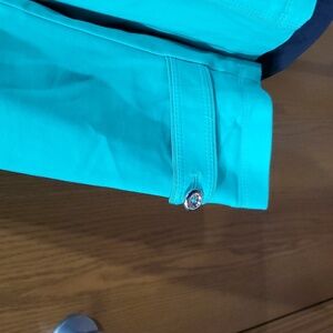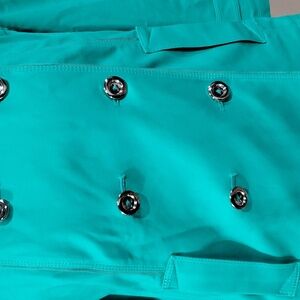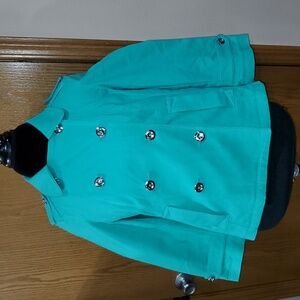 excellent condition no issues size 6 photos look more blue color is turquoise green cute double breasted jacket with silver tone hardware and miltary flair by white house black market