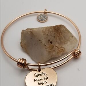 Wheat fields whimsical gold tone family life begins charm bracelet. B426