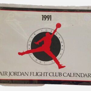 The product is a 1991 Air Jordan Flight Club calendar featuring basketball legend Michael Jordan from the Chicago Bulls. This collectible calendar is in the size of 8.25"x11.25" with an orange color scheme, making it a unique piece of sports memorabilia for fans of the National Basketball Association (NBA). Perfect for displaying on walls or desks, this calendar celebrates the iconic player and his team in the regular season. It is a must-have item for any basketball fan or collector of Michael Jordan memorabilia.
