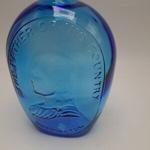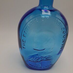 Wheaton Blue Glass Historical Flask The Father of His Country Washington Bottle