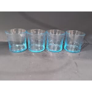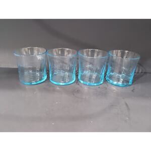 Wheaton Optical Tumbler Set, Ribbed Swirl Glasses, Vtg Blue Drinkware, Set Of 4